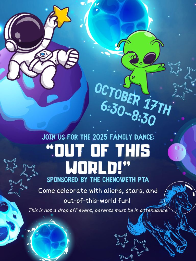 Get ready to dance the night away with your Chenoweth friends with aliens, stars, and out-of-this-world fun!! DJ Roy from Epic Entertainment will be back to regale us with music, games, and contests.